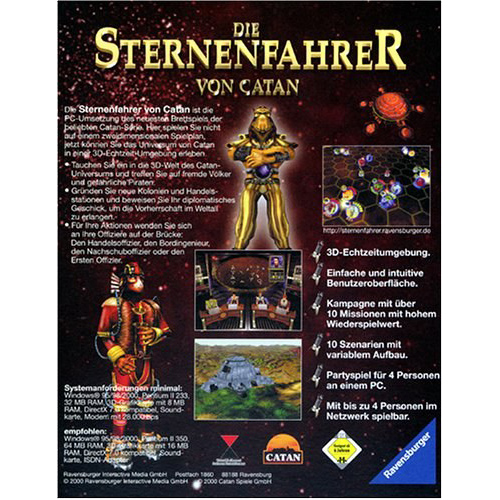 On occasions where you don't have real players to settle Catan with, this CD-ROM allows you to compete against 8 different computer opponents of 3 varying strengths. First, play the CATAN base game against Vicky, Siegfried or Marlene - then take on additional challenges in a campaign consisting of 12 missions.